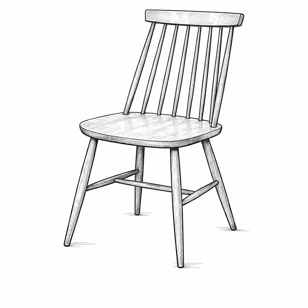 椅子というのは本来、黙って人を座らせていればいい道具のはずなのに、ウィンザーチェアはなぜか背もたれで自己主張を始める。