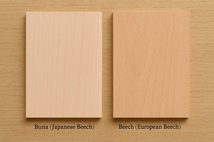 (イメージ画像:ナラ材とホワイトオークの板比較)