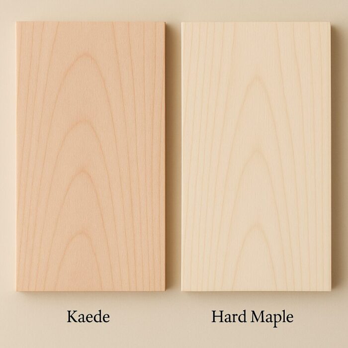 日本のカエデはやや柔らかく、北米のハードメープルは重く硬い。